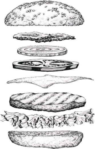 Uważamy, że bułka maślana jest idealnym fundamentem budującym burgera. My zamieniliśmy klasyczny sezam na czarnuszkę. Serducho naszego BURGERA to oczywiście Kotlet, soczysty, średnio wysmażony a przede wszystkim 100% WOŁOWINKI (oczywista sprawa).